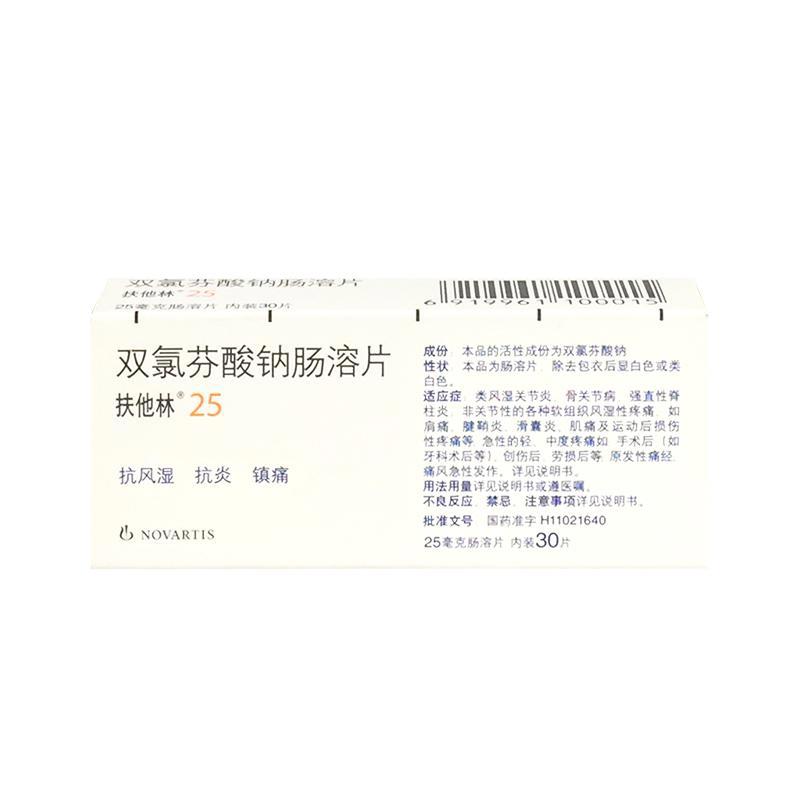 通用名:双氯芬酸钠肠溶片(扶他林)