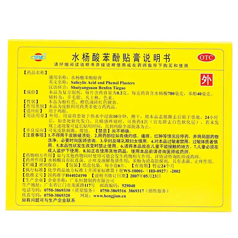 通用名:水杨酸苯酚贴膏(鸡眼膏)