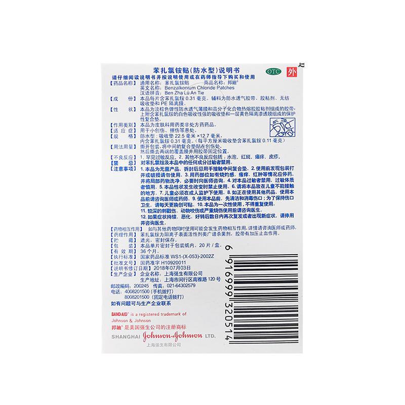 通用名:苯扎氯铵贴(邦迪.防水型)
