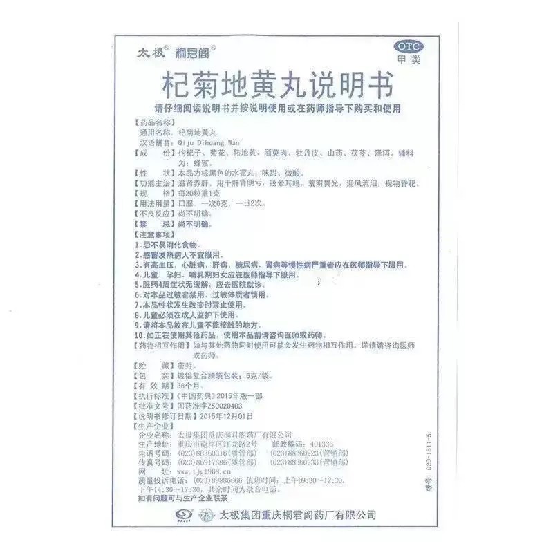 • 生产厂家:太极集团重庆桐君阁药厂有限公司