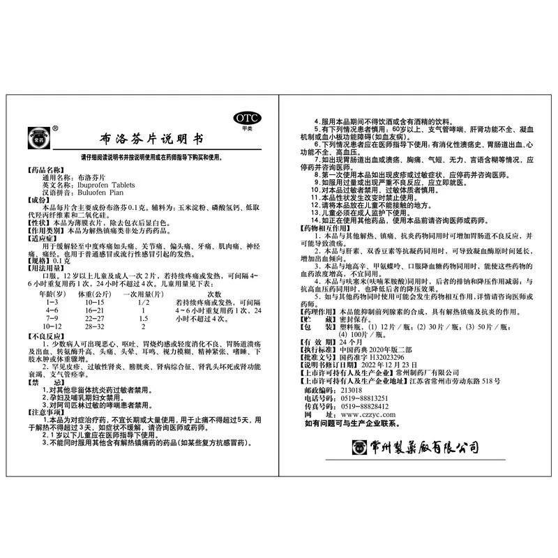 布洛芬片 使用说明书