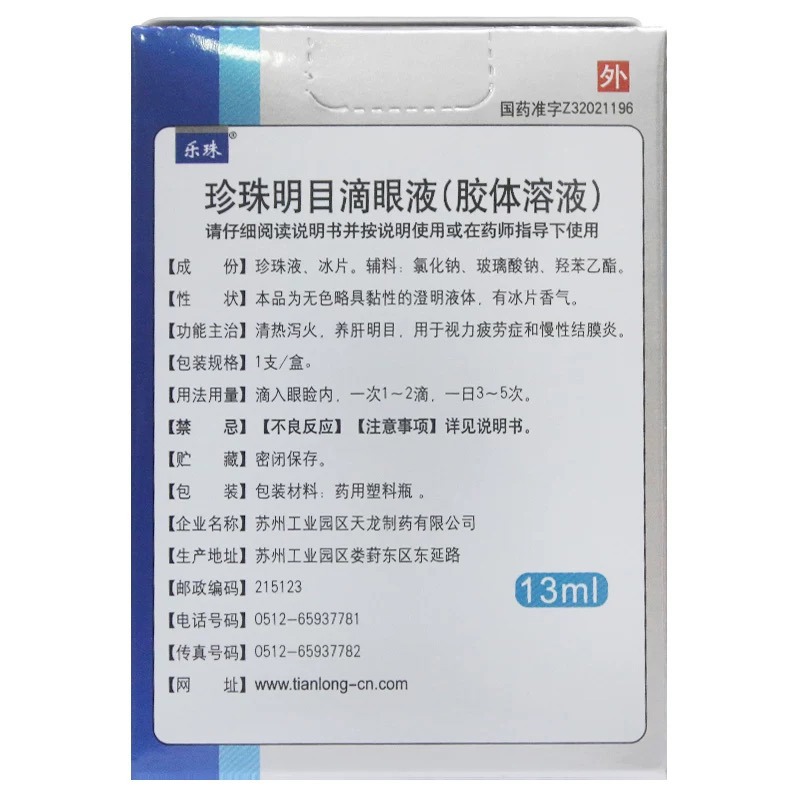 通用名:珍珠明目滴眼液(胶体溶液)