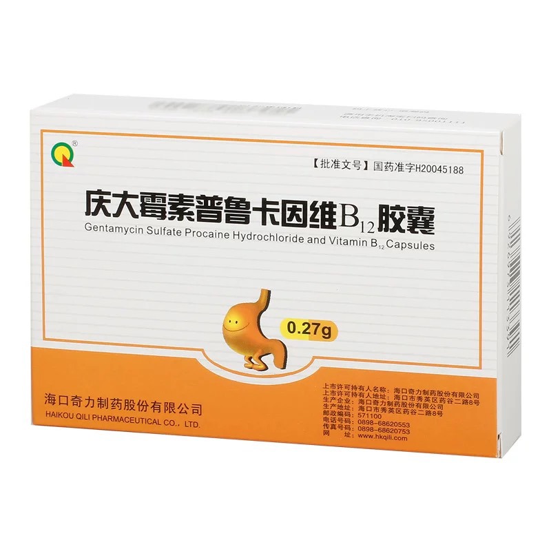 通用名:庆大霉素普鲁卡因维B12胶囊