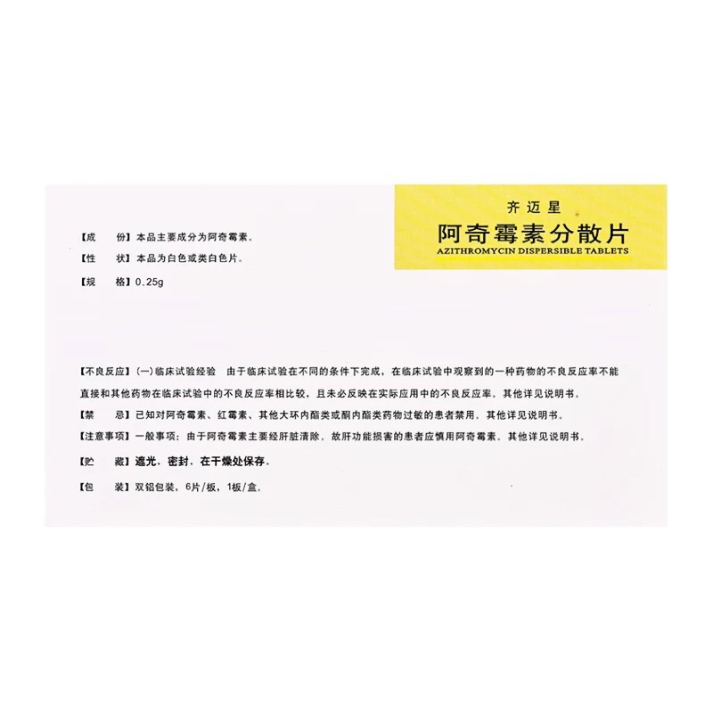 阿奇霉素分散片(齐迈星) 使用说明书
