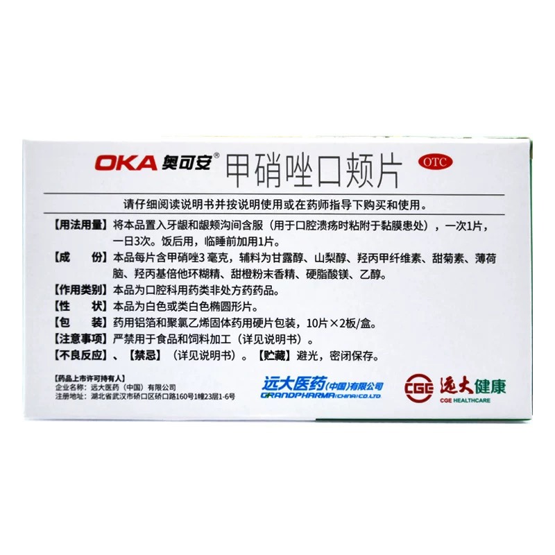 通用名:甲硝唑口颊片(奥可安)