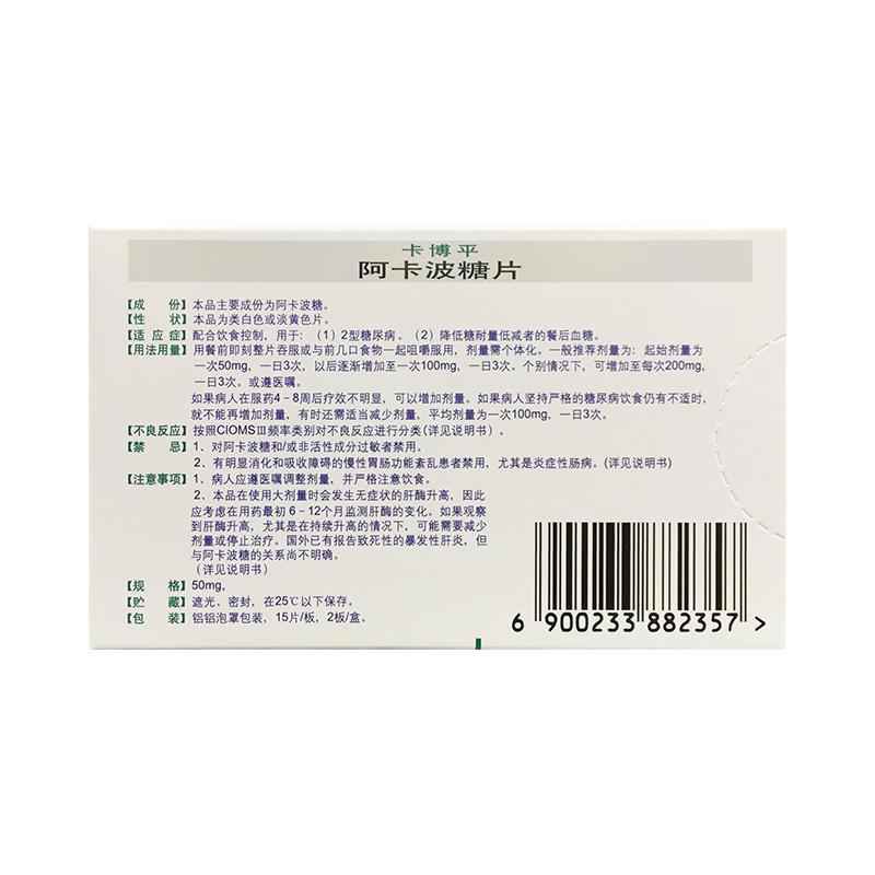 通用名:阿卡波糖片(卡博平)