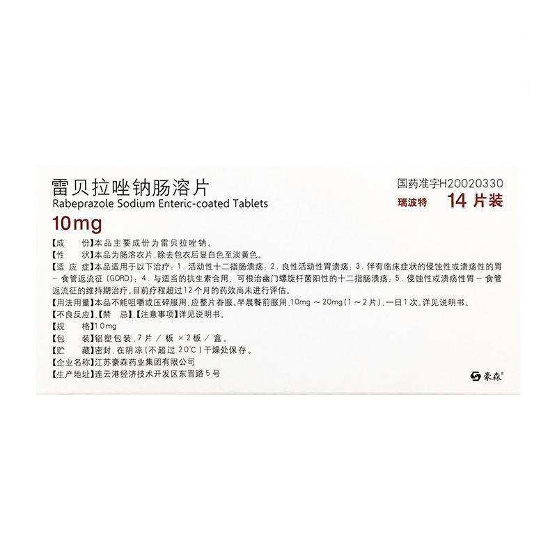 通用名:雷贝拉唑钠肠溶片(瑞波特)