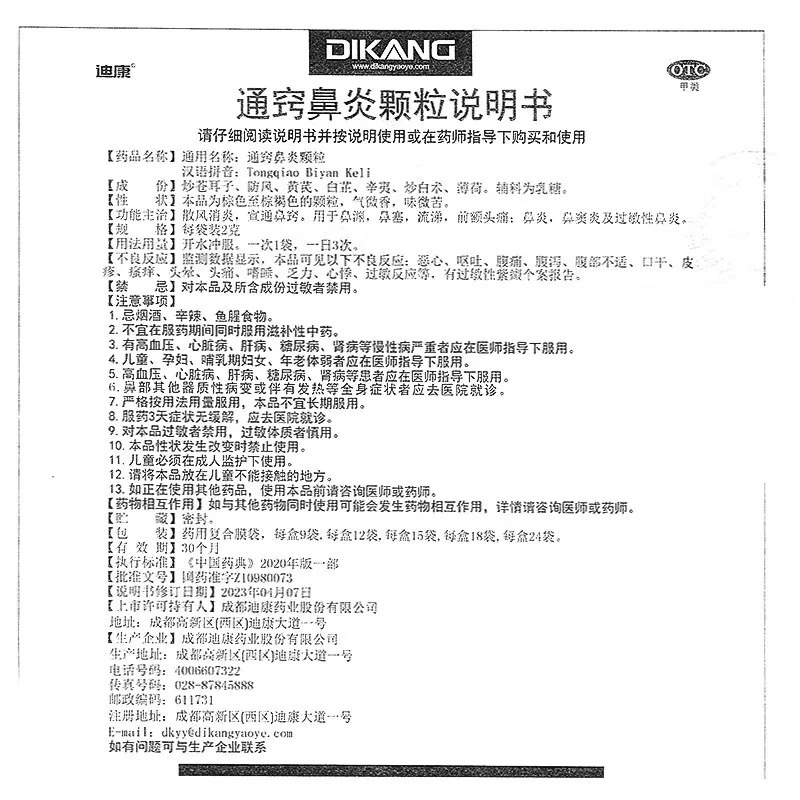 通窍鼻炎颗粒 使用说明书