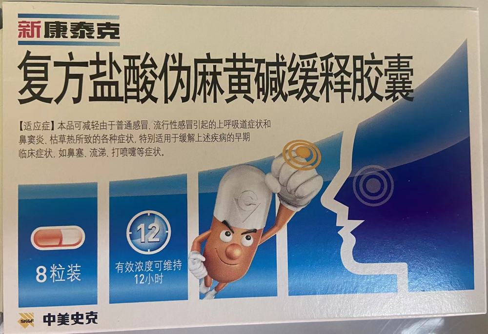 通用名:复方盐酸伪麻黄碱缓释胶囊(MHJ新康泰克)