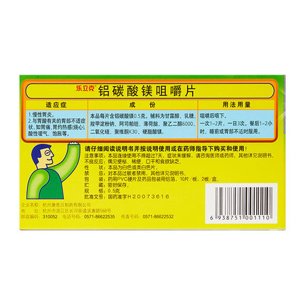 通用名:铝碳酸镁咀嚼片(乐立克)