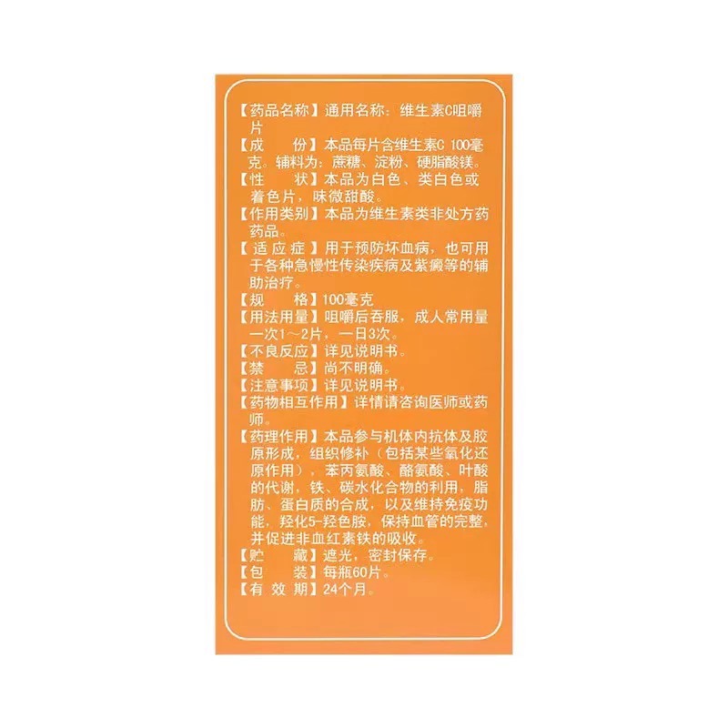 通用名:维生素C咀嚼片