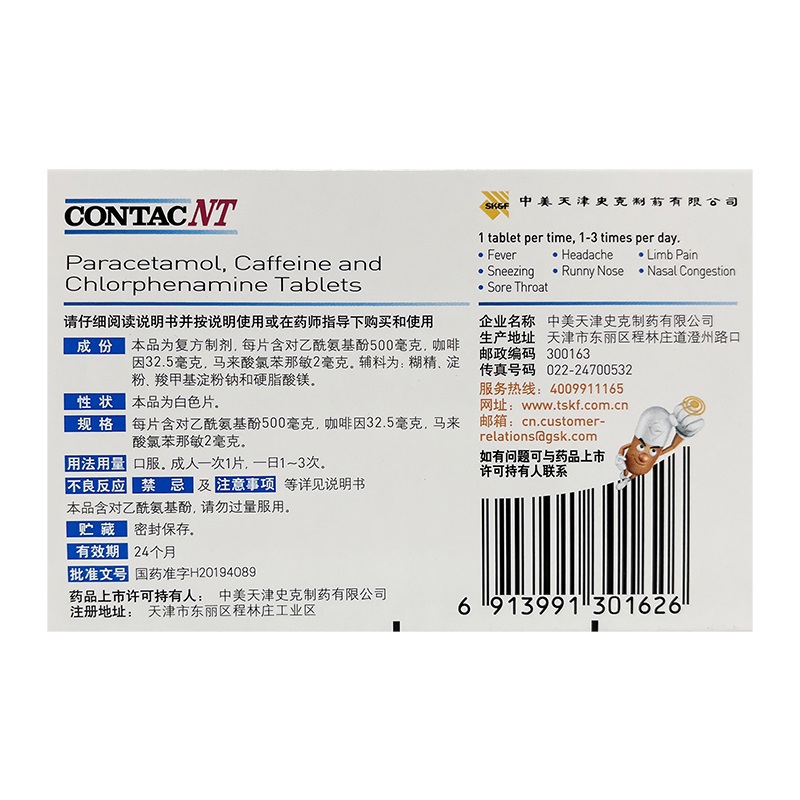 • 生产厂家:中美天津史克制药有限公司