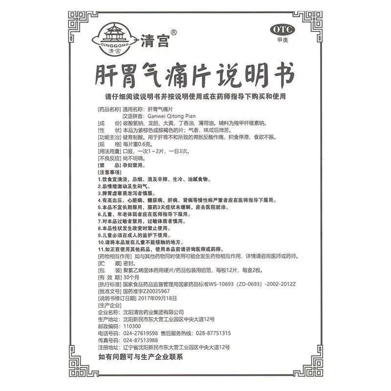 肝胃气痛片 使用说明书